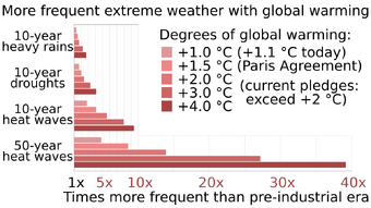 Extreme weather will be progressively more common as the Earth warms.[205]