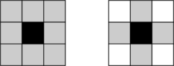 Let [math]\displaystyle{ M_N^n }[/math] represent a N-dimensional hypercubic neighborhood with size on each dimension of [math]\displaystyle{ n=2k+1, k\in\mathbb{Z} }[/math]