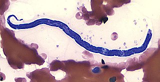 Loa loa filariasis (or Loa loa infection[9])is a skin and eye disease caused by the nematode worm Loa loa. Humans contract this disease through the bite of a deer fly or mango fly (Chrysops spp.), the vectors for Loa loa. The adult Loa loa filarial worm migrates throughout the subcutaneous tissues of humans, occasionally crossing into subconjunctival tissues of the eye where it can be easily observed. Loa loa does not normally affect one's vision but can be painful when moving about the eyeball or across the bridge of the nose.[10][11] The disease can cause red itchy swellings below the skin called "Calabar swellings". The disease is treated with the drug diethylcarbamazine (DEC), and when appropriate, surgical methods may be employed to remove adult worms from the conjunctiva. Loiasis belongs to the so-called neglected diseases.[8]