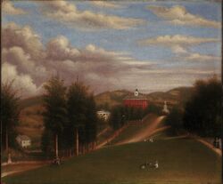 The early planners of Williams College eschewed the traditional collegiate quadrangle organization, choosing to freely site buildings among the hills. Later construction, including East and West Colleges and Griffin Hall, tended to cluster around Main Street in Williamstown. The first campus quadrangle was formed with East College, South College, and the Hopkins Observatory.[107]