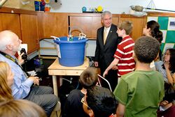 Former EPA Administrator Stephen Johnson teaches environmental stewardship to Roberto Clemente Middle School Students.