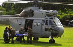 The 2011 deployment, which started on 21 March and ended on 4 August,[5] was centered on the amphibious warfare ship USS Cleveland.[6] In addition to USN personnel, resources deployed include personnel and equipment from other branches of the United States Armed Forces, government agencies, non-government organizations, and the militaries of Canada, Singapore, and Spain; ships from the United States Coast Guard, Australia, New Zealand, and Japan; and a helicopter team from France.[7] In addition to carrying out medical and engineering infrastructure projects in Tonga, Vanuatu, Papua New Guinea, Timor-Leste, and the Federated States of Micronesia, the operation aimed to implement sustainability projects in these nations.[3][8][9] In the first three ports, 21,000 patients were treated, thousands of contact hours of formal Subject Matter Expert Exchanges (SMEEs) were completed, and classrooms and a water catchment system were built.[10][11] The total cost of the 2011 mission is reportedly $20 million or almost $4 million for each port of call.[12]