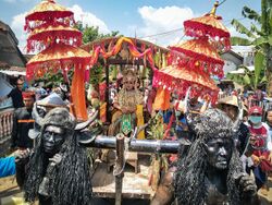 Dewi Sri remains highly revered especially by the Javanese, Balinese, and Sundanese of Indonesia though there are many regional analogues or variations of her legend throughout Indonesia. Despite most Indonesians being observant Sunni Muslims or Balinese Hindus the indigenous underlying animist-era beliefs, notably of Sunda Wiwitan and Kejawen, remain very strong, are worshiped parallel to Islam, Buddhism, Hinduism and Christianity without conflict; and are cultivated by the Royal Courts, especially of Cirebon, Ubud, Surakarta and Yogyakarta, which are also popular local and international tourist attractions. The Javanese harvest ceremony is called Sekaten or Grebeg Mulud which also corresponds to Maulid Nabi; the birth of prophet Muhammad.