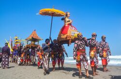The loro blonyo (two "pedestals" or foundations) statue also have some overlap with Dewi Sri and Sedhana. Balinese people have certain rituals to rever Dewi Sri by making an effigy as her representation from janur (young coconut leaf), lontar leaf, or from cakes made of rice flour.
