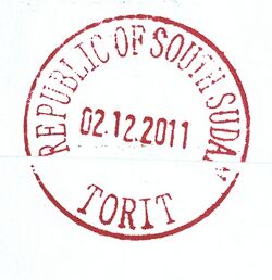 A 2011 Torit postmark showing the new style of South Sudanese postmarks.