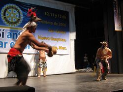 The most numerous indigenous groups in the state are the Mayo, the Yaquis and the Seris; however, there are a number of other groups which have maintained much of their way of life in territory in which they have lived for centuries.[107] There were at least nine tribes, eight of which remain today. Seven are indigenous to Sonora, with one migrating to the state over a century ago from the United States.[108] These cultures generally hold in reverence the deserts, mountains, riverbeds and Gulf of California with which they have contact. Many of these beliefs have been adapted to Catholicism. There are efforts to preserve indigenous languages, but with groups of diminished size, this has been a challenge.[107] As of 2000, there were 55,609 people, or 2.85% of the population, who spoke an indigenous language in the state. The indigenous population is concentrated in fourteen municipalities, which are home to 91% of the total indigenous population of the state. The municipalities with the greatest presence include Etchojoa with 19% of the municipal population, Guaymas with 8.34%, Huatabampo with 11.8%, Navojoa with 5.92%, Hermosillo with 1.1%, Cajeme with 1%, Bácum with 9.26%, Benito Juárez with 5.2%, San Ignacio Río Muerto with 7.4%, Nogales with 1.2%, Álamos with 3.9%, San Miguel de Horcasitas with 13.7%, Yécora with 6.8% and San Luis Río Colorado with 5.1%.[104]