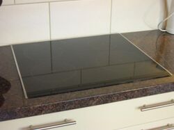 - Induction cooker – heats a cooking vessel with induction heating, instead of infrared radiation from electrical wires or a gas flame as with a traditional cooking stove. For all models of induction cooktop, a cooking vessel must be made of a ferromagnetic metal such as cast iron or stainless steel or at least compounded with a steel inlay. Copper, glass and aluminum vessels can be placed on a ferromagnetic interface disk which enables these materials to be used.