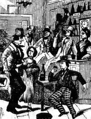 The town drunk may serve merely as a moral example and object lesson on the evils of drunkenness. This approach to the character is associated with the temperance movement, and peaked at the start of the twentieth century. The Prohibition film Ten Nights in a Barroom portrays the inevitable fall into destitute drunkenness of a person who dared to take that "Fatal Glass of Beer", the title of another period drama working this vein. A town drunk who appears in Our Town by Thornton Wilder is perhaps the most often seen example of this version of the character.[1] Pap Finn in The Adventures of Huckleberry Finn is another famous example. In modern fiction, which tends to reflect the contemporary influences of the sobriety movement, the town drunk may get sober and set about revitalizing his life.[2]