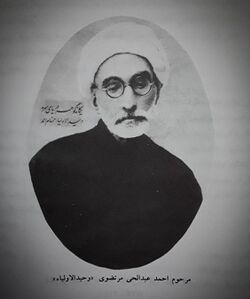 Mirza Ahmad Abdulhay Mortazavi Tabrizi, [65] known as Khoshnevis and Vahid al-Owlia, 37th Qutb of Zahabiya.