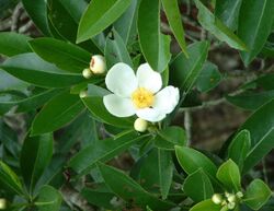 Gordonia is a genus of flowering plants in the family Theaceae, related to Franklinia, Camellia and Stewartia. Of the roughly 40 species, all but two are native to southeast Asia in southern China , Taiwan and Indochina. The remaining species, G. lasianthus (Loblolly-bay), is native to southeast North America, from Virginia south to Florida and west to Louisiana; G. fruticosa is native to the tropical rainforests of Central and South America, from Costa Rica to Brazil.