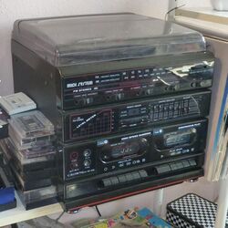 "Midi"-style systems (mimicking the appearance of a component-based system) were also popular during the 1980s. These typically included a record deck, tuner, dual cassette deck, amplifier and separate speakers. Some later midi systems also included a CD player in the main unit in addition to the turntable.