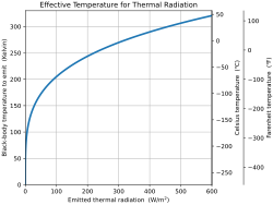 where OLR is the average flux (power per unit area) of outgoing longwave radiation emitted to space and [math]\displaystyle{ \sigma }[/math] is the Stefan-Boltzmann constant. Similarly, the effective temperature of the surface is given by