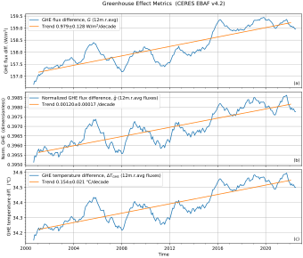 Whether the greenhouse effect is expressed as a change in temperature or as a change in longwave thermal radiation, the same effect is being measured.[27]