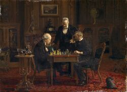 The New York art world took a major turn during the Gilded Age, seeing an outgrowth of exhibitions and the establishment of major auction houses with a focus on American art.[163] The Gilded Age was pivotal in establishing the New York art world in the international art market.[164]