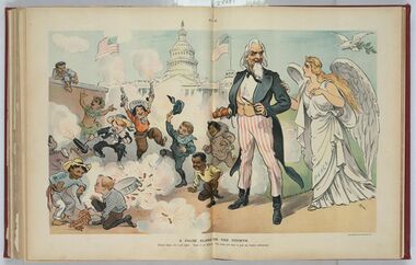The early half of the Gilded Age roughly coincided with the middle portion of the Victorian Era in Britain and the Belle Époque in France. With respect to eras of American history, historical views vary as to when the Gilded Age began, ranging from starting right after the Civil War ended in 1865, or 1873, or as the Reconstruction Era ended in 1877.[8] The date marking the end of the Gilded Age also varies. The ending is generally given as the beginning of the Progressive Era in the 1890s (sometimes the United States presidential election of 1896).[9][10][11][12]