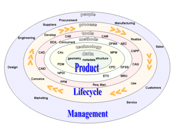The core of PLM (product lifecycle management) is the creation and central management of all product data and the technology used to access this information and knowledge. PLM as a discipline emerged from tools such as CAD, CAM and PDM, but can be viewed as the integration of these tools with methods, people and the processes through all stages of a product's life.[12][13] It is not just about software technology but is also a business strategy.[14]
