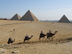 The Giza Plateau is a desert plateau located west of modern day Cairo. The plateau is in fact simply the northernmost of a long string of necropolises that run along the desert west of the Nile from Giza as far south as the Faiyum. This string of necropolises contains well over 100 pyramids, built between the Third Dynasty and the end of the Middle Kingdom.[1] As such it is important to discard the implied but rarely stated assumption of these "alternate" theories that the "big three" pyramids at Giza are the only ones in Egypt.