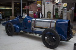 He also built a Brooklands racer with a purpose-built V12 18.3-litre engine whose design was a hybrid of the Sunbeam Manitou and the Sunbeam Arab aero engines. This engine had four blocks of three cylinders arranged in two banks set at 60 degrees (unlike the Arab which were set at 90 degrees). Each cylinder had one inlet and two exhaust valves actuated by a single overhead camshaft. The two camshafts were driven by a complex set of 16 gears from the front of the crankshaft – a similar arrangement to that used on the Maori engine which had two OHC per bank of cylinders. This famous car (Sunbeam 350HP) established three Land Speed Records, the first achieved by Kenelm Lee Guinness at Brooklands in 1922 with a speed of 133.75 mph. Malcolm Campbell then purchased the car, had it painted in his distinctive colour scheme, named it Blue Bird and in September 1924 achieved a new record speed of 146.16 mph at Pendine Sands in South Wales, raising it the following year to 150.76 mph. The same year Coatalen's new 3-litre Super Sports came 2nd at Le Mans, beating Bentley – this was the first production twin-cam car in the world. In 1926 Segrave captured the LSR in a new 4-litre V12 Sunbeam racer originally named Ladybird and later renamed Tiger. Coatalen decided to re-enter the LSR field himself, building the truly gigantic Sunbeam 1000HP powered by two 450 hp (340 kW) Matabele engines. On 29 March 1927 the car captured the speed record at 203.792 mph (327.971 km/h). The car is now at the National Motor Museum, Beaulieu, UK.