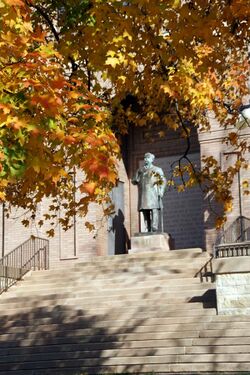 In 1861, a company of male students and faculty members enlisted in the Army to fight in the American Civil War. Student-soldiers participated in 17 major battles, carrying a flag hand-sewn by UIU women students. In 1917, UIU male students joined the armed forces during World War I, while women students organized American Red Cross classes on campus; the UIU gym became a barracks, and the athletic field was the scene of military drills. By 1920, a systematic program of extension work throughout northeast Iowa had begun, with Upper Iowa referred to as "a pioneer in the field."[4] Those students who joined the service to fight in World War II took advantage of the G.I. Bill to complete their education, which dramatically increased Upper Iowa enrollment between 1947 and 1950. Record enrollments were also seen after the Vietnam War (1952–1970).[5]