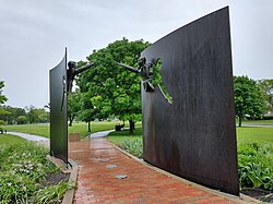 Indianapolis anchors the 28th largest metropolitan economy in the U.S.[11] Prominent industries include trade, transportation, and utilities; education and health services; professional and business services; government; leisure and hospitality; and manufacturing.[12] The city has notable niche markets in amateur sports and auto racing.[13][14] Contemporary Indianapolis is home to two major league sports teams, three Fortune 500 companies, eight university campuses, and numerous cultural institutions, including the world's largest children's museum.[15][16] The city is perhaps best known for hosting the world's largest single-day sporting event, the Indianapolis 500.[17][18] Among the city's historic sites and districts, Indianapolis is home to the largest collection of monuments dedicated to veterans and war casualties in the U.S. outside of Washington, D.C.[19][20]
