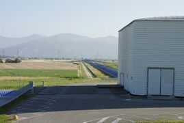 View of the 3 km-long Virgo west arm (right pipe). The tube on the left, which is 150 m-long, hosts the mode-cleaner cavity which is used to filter spatially the laser beam.