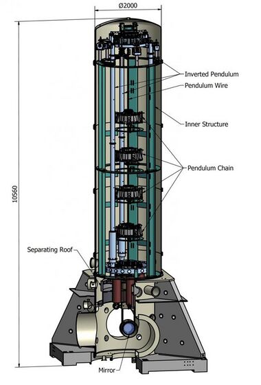 The initial Virgo detector recorded scientific data from 2007 to 2011 during four science runs.[28] There was a shut-down of a few months in 2010 to allow for a major upgrade of the Virgo suspension system: the original suspension steel wires were replaced by glass fibers in order to reduce the thermal noise.[29] After several months of data taking with this final configuration, the initial Virgo detector was shut down in September 2011 to begin the installation of Advanced Virgo.[30]