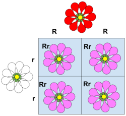 When plants of the F1 generation are self-pollinated, the phenotypic and genotypic ratio of the F2 generation will be 1:2:1 (Red:Pink:White).[11]