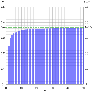For a sample of only 1000 independent trials, however, the probability that the event does not happen in any of them, even once (improbability), is only[6] 0.9991000 ≈ 0.3677, or 36.77%. Then, the probability that the event does happen, at least once, in 1000 trials is ( 1 − 0.9991000 ≈ 0.6323, or ) 63.23%. This means that this "unlikely event" has a probability of 63.23% of happening if 1000 independent trials are conducted. If the number of trials were increased to 10,000, the probability of it happening at least once in 10,000 trials rises to ( 1 − 0.99910000 ≈ 0.99995, or ) 99.995%. In other words, a highly unlikely event, given enough independent trials with some fixed number of draws per trial, is even more likely to occur.