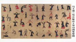 A painted scroll on display at the Hunan Provincial Museum and known as the Daoyintu found in tomb three at Mawangdui in 1973 and dated to 168 BC shows coloured drawings of 44 figures in standing and sitting postures doing Tao yin exercises. It is the earliest physical exercise chart in the world so far and illustrates a medical system which does not rely on external factors such as medication, surgery or treatments but internal factors to prevent disease.