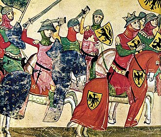 Most of the traditional electors appointed Philip II of the Hohenstaufen dynasty as emperor, but opposing princes held their own election to appoint Otto of House Welf, whose candidacy had been supported by his cousin King Richard I of England.[52] The pope, deciding that he had an opportunity to drive the Hohenstaufens out of their holdings in Italy, backed Otto and crowned him as the Holy Roman Emperor. In return for the pope's favor, Otto turned a blind eye when the papacy began driving German feudal lords out of southern Italy.[52] Civil war ensued between Otto and Philip, who still wouldn't give up on the throne and had himself crowned by the Archbishop of Cologne. The war lasted between 1201 and 1208, and Philip's forces generally came out on top in the various military engagements.[52] In 1208, however, Philip was murdered by an unknown party, bringing the war to an end.