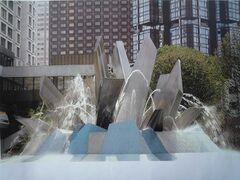 After World War II, fountains in the United States became more varied in form. Some, like Ruth Asawa's Andrea (1968)[50] and the Vaillancourt Fountain (1971), both located in San Francisco, were pure works of sculpture. Other fountains, like the Frankin Roosevelt Memorial Waterfall (1997), by architect Lawrence Halprin, were designed as landscapes to illustrate themes. This fountain is part of the Franklin Delano Roosevelt Memorial in Washington D.C., which has four outdoor "rooms" illustrating his presidency. Each "room" contains a cascade or waterfall; the cascade in the third room illustrates the turbulence of the years of the World War II. Halprin wrote at an early stage of the design; "the whole environment of the memorial becomes sculpture: to touch, feel, hear and contact - with all the senses."[51]