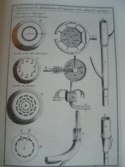 Musical fountains were first described in the 1st century AD by the Greek scientist and engineer Hero of Alexandria in his book Pneumatics. Hero described and provided drawings of "A bird made to whistle by flowing water," "A Trumpet sounded by flowing water," and "Birds made to sing and be silent alternately by flowing water." In Hero's descriptions, water pushed air through musical instruments to make sounds. It is not known if Hero made working models of any of his designs.[57]