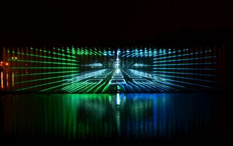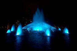 Musical fountains create a theatrical spectacle with music, light and water, usually employing a variety of programmable spouts and water jets controlled by a computer.