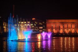 Multimedia Fountain Roshen is the only one in Ukraine and the largest floating fountain in Europe, built in the river Southern Buh in Vinnytsia City near Festivalny Isle (Kempa Isle)[61]