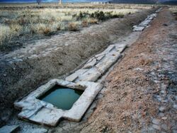 Ancient civilizations built stone basins to capture and hold precious drinking water. A carved stone basin, dating to around 700 BC, was discovered in the ruins of the ancient Sumerian city of Lagash in modern Iraq. The ancient Assyrians constructed a series of basins in the gorge of the Comel River, carved in solid rock, connected by small channels, descending to a stream. The lowest basin was decorated with carved reliefs of two lions.[3] The ancient Egyptians had ingenious systems for hoisting water up from the Nile for drinking and irrigation, but without a higher source of water it was not possible to make water flow by gravity, There are lion-shaped fountains in the Temple of Dendera in Qena.