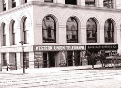 Founded in 1851 as the New York and Mississippi Valley Printing Telegraph Company in Rochester, New York,[3] the company changed its name to the Western Union Telegraph Company in 1856 after merging with several other telegraph companies.[4] It dominated the American telegraphy industry from the 1860s to the 1980s,[5] pioneering technology such as telex and developing a range of telegraph-related services, including wire money transfer, in addition to its core business of transmitting and delivering telegram messages.