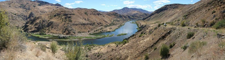 In Hells Canyon, the Snake River is impounded by three dams, Brownlee Dam, Oxbow Dam, and Hells Canyon Dam (which completely blocks the migration of anadromous fish[10]), after which the river is designated a National Wild and Scenic River as is flows through Hells Canyon Wilderness. In this section of the river, the Salmon River, one of the largest tributaries of the Snake, joins. Just across the Washington state line, another large tributary, the Grande Ronde River joins the Snake.