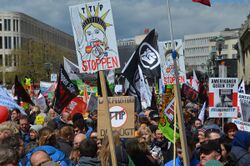 Some opponents of globalization see the phenomenon as a promotion of corporate interests.[168] They also claim that the increasing autonomy and strength of corporate entities shapes the political policy of countries.[169][170] They advocate global institutions and policies that they believe better address the moral claims of poor and working classes as well as environmental concerns.[171] Economic arguments by fair trade theorists claim that unrestricted free trade benefits those with more financial leverage (i.e. the rich) at the expense of the poor.[172]
