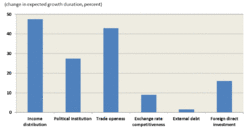 In the book The End of Poverty, Jeffrey Sachs discusses how many factors can affect a country's ability to enter the world market, including government corruption; legal and social disparities based on gender, ethnicity, or caste; diseases such as AIDS and malaria; lack of infrastructure (including transportation, communications, health, and trade); unstable political landscapes; protectionism; and geographic barriers.[158] Jagdish Bhagwati, a former adviser to the U.N. on globalization, holds that, although there are obvious problems with overly rapid development, globalization is a very positive force that lifts countries out of poverty by causing a virtuous economic cycle associated with faster economic growth.[150] However, economic growth does not necessarily mean a reduction in poverty; in fact, the two can coexist. Economic growth is conventionally measured using indicators such as GDP and GNI that do not accurately reflect the growing disparities in wealth.[159] Additionally, Oxfam International argues that poor people are often excluded from globalization-induced opportunities "by a lack of productive assets, weak infrastructure, poor education and ill-health;"[160] effectively leaving these marginalized groups in a poverty trap. Economist Paul Krugman is another staunch supporter of globalization and free trade with a record of disagreeing with many critics of globalization. He argues that many of them lack a basic understanding of comparative advantage and its importance in today's world.[161]