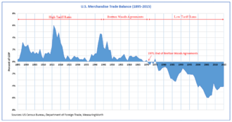 After World War II, work by politicians led to the agreements of the Bretton Woods Conference, in which major governments laid down the framework for international monetary policy, commerce, and finance, and the founding of several international institutions intended to facilitate economic growth by lowering trade barriers. Initially, the General Agreement on Tariffs and Trade (GATT) led to a series of agreements to remove trade restrictions. GATT's successor was the World Trade Organization (WTO), which provided a framework for negotiating and formalizing trade agreements and a dispute resolution process. Exports nearly doubled from 8.5% of total gross world product in 1970 to 16.2% in 2001.[42] The approach of using global agreements to advance trade stumbled with the failure of the Doha Development Round of trade negotiation. Many countries then shifted to bilateral or smaller multilateral agreements, such as the 2011 United States–Korea Free Trade Agreement.