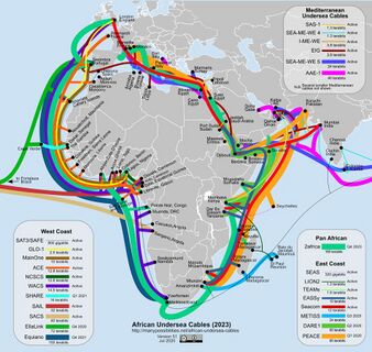 Economically, globalization involves goods, services, data, technology, and the economic resources of capital.[2] The expansion of global markets liberalizes the economic activities of the exchange of goods and funds. Removal of cross-border trade barriers has made the formation of global markets more feasible.[3] Advances in transportation, like the steam locomotive, steamship, jet engine, and container ships, and developments in telecommunication infrastructure such as the telegraph, the Internet, mobile phones, and smartphones, have been major factors in globalization and have generated further interdependence of economic and cultural activities around the globe.[4][5][6]