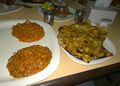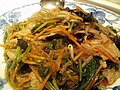 Japchae, a kind of Korean noodle dish made with marinated beef and vegetables in soy sauce and sesame oil.