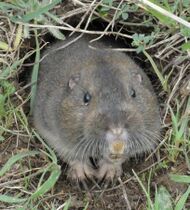 Most rodents are herbivorous, feeding exclusively on plant material such as seeds, stems, leaves, flowers, and roots. Some are omnivorous and a few are predators.[3] The field vole is a typical herbivorous rodent and feeds on grasses, herbs, root tubers, moss, and other vegetation, and gnaws on bark during the winter. It occasionally eats invertebrates such as insect larvae.[30] The plains pocket gopher eats plant material found underground during tunneling, and also collects grasses, roots, and tubers in its cheek pouches and caches them in underground larder chambers.[31]