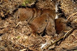 Larger rodents tend to live in family units where parents and their offspring live together until the young disperse. Beavers live in extended family units typically with a pair of adults, this year's kits, the previous year's offspring, and sometimes older young.[41] Brown rats usually live in small colonies with up to six females sharing a burrow and one male defending a territory around the burrow. At high population densities, this system breaks down and males show a hierarchical system of dominance with overlapping ranges. Female offspring remain in the colony while male young disperse.[42] The prairie vole is monogamous and forms a lifelong pair bond. Outside the breeding season, prairie voles live with others in small colonies. A male is not aggressive towards other males until he has mated, after which time he defends a territory, a female, and a nest against other males. The pair huddles together, grooms one another, and shares nesting and pup-raising responsibilities.[43]