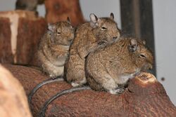 Social rodents have a wider range of vocalizations than do solitary species. Fifteen different call-types have been recognized in adult Kataba mole rats and four in juveniles.[54] Similarly, the common degu, another social, burrowing rodent, exhibits a wide array of communication methods and has an elaborate vocal repertoire comprising fifteen different categories of sound.[55] Ultrasonic calls play a part in social communication between dormice and are used when the individuals are out of sight of each other.[56]