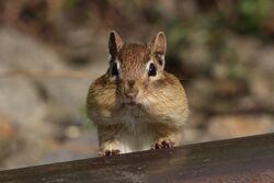 The Sciuromorpha, such as the eastern grey squirrel, have a large deep masseter, making them efficient at biting with the incisors. The Myomorpha, such as the brown rat, have enlarged temporalis and masseter muscles, making them able to chew powerfully with their molars.[8] In rodents, masseter muscles insert behind the eyes and contribute to eye boggling that occurs during gnawing where the quick contraction and relaxation of the muscle causes the eyeballs to move up and down.[8] The Hystricomorpha, such as the guinea pig, have larger superficial masseter muscles and smaller deep masseter muscles than rats or squirrels, possibly making them less efficient at biting with the incisors, but their enlarged internal pterygoid muscles may allow them to move the jaw further sideways when chewing.[9] The cheek pouch is a specific morphological feature used for storing food and is evident in particular subgroups of rodents like kangaroo rats, hamsters, chipmunks and gophers which have two bags that may range from the mouth to the front of the shoulders.[10] True mice and rats do not contain this structure but their cheeks are elastic due to a high degree of musculature and innervation in the region.[11]