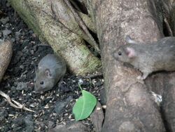 More specialized carnivores include the shrewlike rats of the Philippines, which feed on insects and soft-bodied invertebrates, and the Australian water rat, which devours aquatic insects, fish, crustaceans, mussels, snails, frogs, birds' eggs, and water birds.[35][36] The grasshopper mouse from dry regions of North America feeds on insects, scorpions, and other small mice, and only a small part of its diet is plant material. It has a chunky body with short legs and tail, but is agile and can easily overpower prey as large as itself.[37]