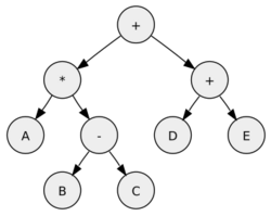 For example, consider the expression A*(B-C)+(D+E), written in reverse Polish notation as A B C - * D E + +. Compiling and running this on a simple imaginary stack machine would take the form: