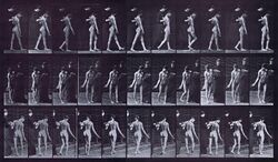 Animation created from an 1887 photographic study of locomotion of a male MS patient with walking difficulties by Muybridge