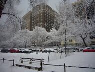 In the first four years of their marriage, the Arendts lived in Berlin, and were supporters of the socialist journal Socialist Monthly Bulletins (Sozialistische Monatshefte).[lower-alpha 2][27] At the time of Hannah's birth, Paul Arendt was employed by an electrical engineering firm in Linden, and they lived in a frame house on the market square (Marktplatz).[28] They moved back to Königsberg in 1909 because of Paul's deteriorating health.[7][29] He suffered from chronic syphilis and was institutionalized in the Königsberg psychiatric hospital in 1911. For years afterward, Hannah had to have annual WR tests for congenital syphilis.[30] He died on 30 October 1913, when Hannah was seven, leaving her mother to raise her.[23][31] They lived at Hannah's grandfather's house at Tiergartenstraße 6, a leafy residential street adjacent to the Königsberg Tiergarten, in the predominantly Jewish neighborhood of Hufen.[32] Although Hannah's parents were non-religious, they were happy to allow Max Arendt to take Hannah to the Reform synagogue. She also received religious instruction from the rabbi, Hermann Vogelstein, who would come to her school for that purpose.[lower-alpha 3] Her family moved in circles that included many intellectuals and professionals. It was a social circle of high standards and ideals. As she recalled it:[33]